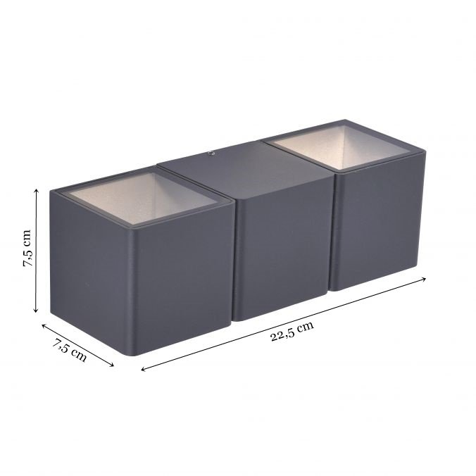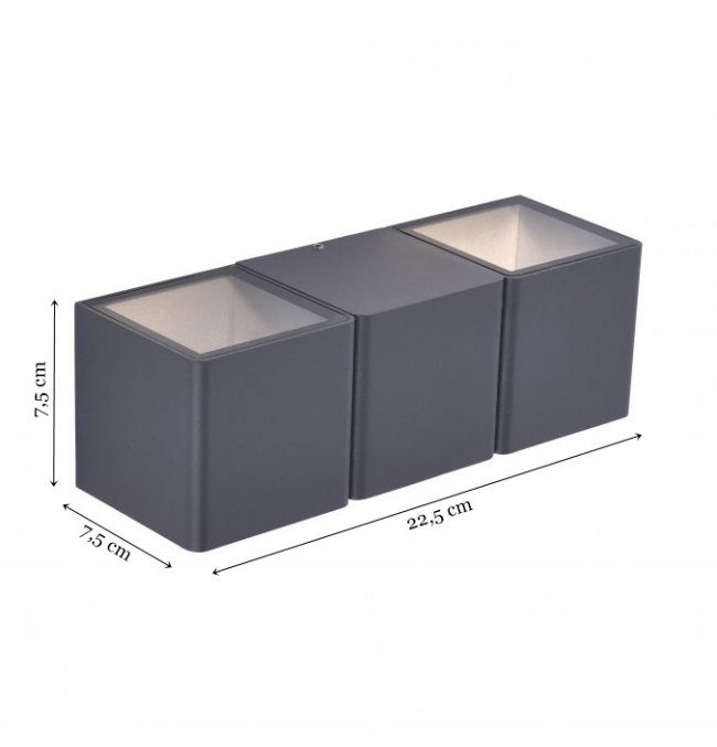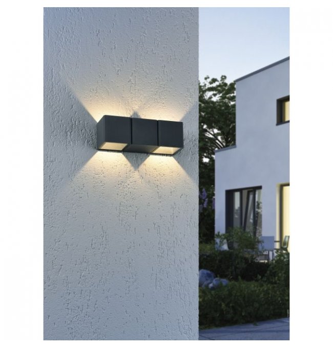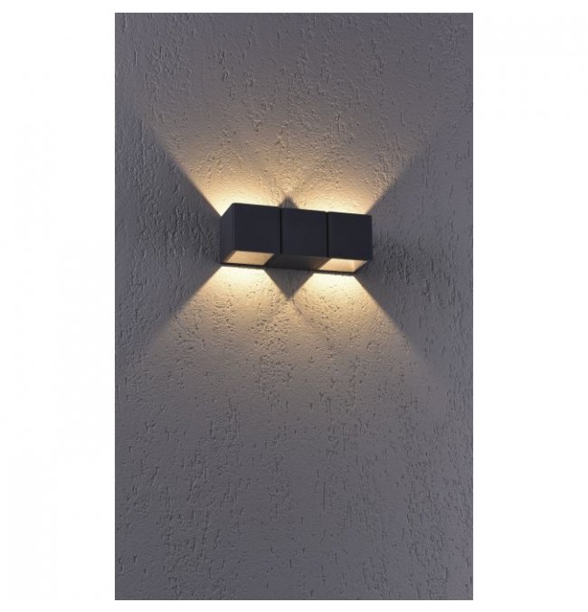 Ta dwupunktowa zewnętrzna lampa ścienna zachwyca nowoczesnym designem. Lampa wykonana z odlewanego ciśnieniowo aluminium w kolorze antracytowym jest wyposażona w zintegrowane energooszczędne źródło LED. Dzięki ciepłej białej barwie światła produkt tworzy przytulną atmosferę. Zastosowana klasa ochony IP54 umożliwia zamontowania tej lampy na zewnątrz. Oświetlenie typu "góra-dół" świetnie sprawdzi się jako dopełnienie wyglądu Twojego domu.